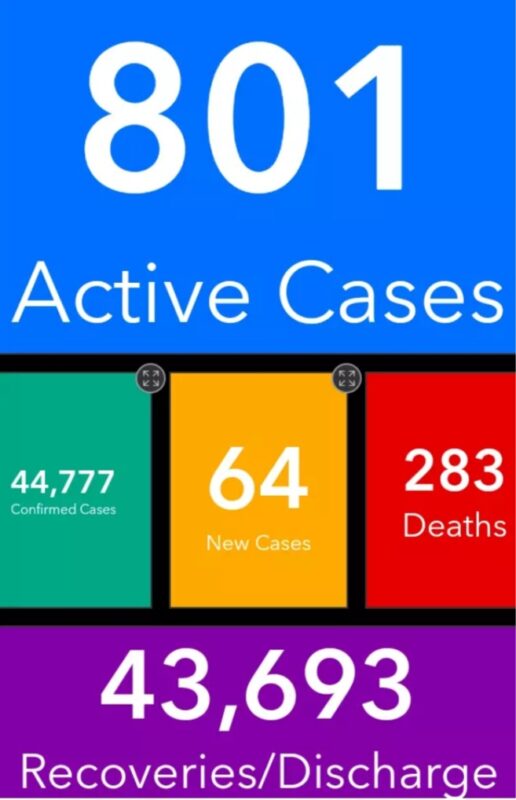 According to the latest update by the Ghana Health Service (GHS), the number of total confirmed cases have now risen to 44,777 meaning there has been an additional 64 new cases today. The number of confirmed cases seem disturbing, but the number of recoveries and discharge is impressive.