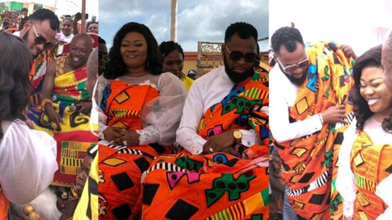 The video has Ciara and her husband seated and adorned in colourful kente fabric which they put over the white outfits there were donning.