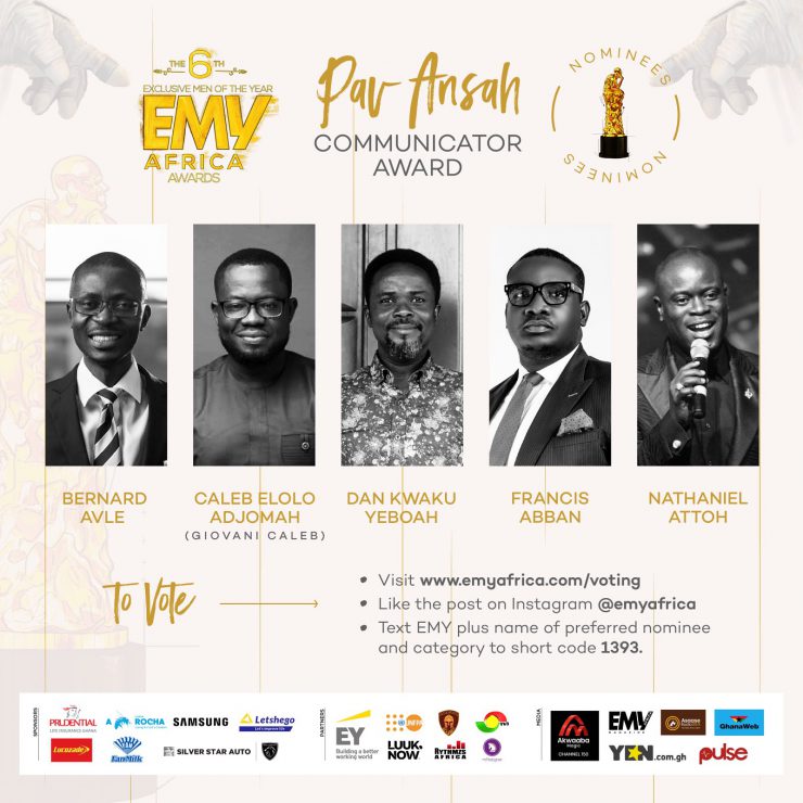 Visit www.emyafrica.com/vote , like the nominee’s post on EMY Africa Instagram page or text EMY plus name of preferred nominee and category to short code 1393.