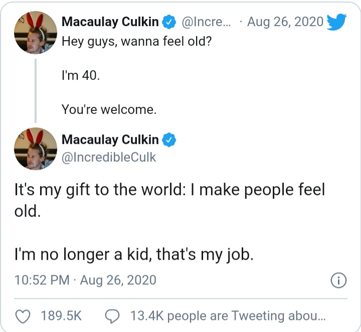 Culkin took to Twitter to announce his birthday with the excitement that he is no longer a teen neither is he that old but very glad for creating the best childhood memories for many across the globe.