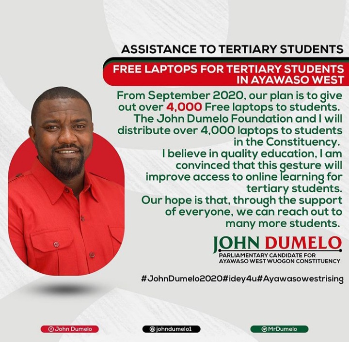 According to John Dumelo in a post sighted by GhBase.com, the distribution of 4000 laptops will start from September 2020.