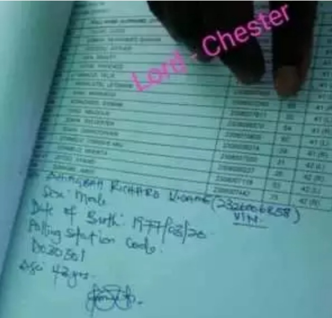 But pictures available to Ghananewspress, reveals that the his name and voter ID details was written in pen in the register to allow him to vote.