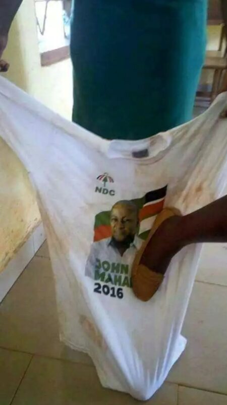 A photo fast going viral shows a group of nurses stepping on an NDC shirt, having the photo of the former president of Ghana, John Dramani Mahama.