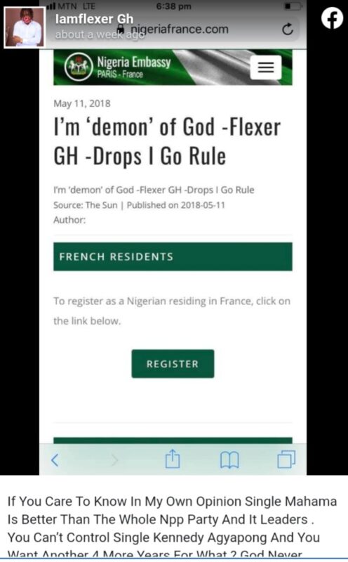 The 27-year-old BM boss, who recently celebrated his birthday wrote on his profile: If You Care To Know In My Own Opinion Single Mahama Is Better Than The Whole Npp Party And It Leaders. You Can’t Control Single Kennedy Agyapong And You Want Another 4 More Years For What? God Never Chose You Over Mahama And Thats The Truth. Mahama Has Intelligence To Govern Ghana Better Than Nana Addo. Small Sammy Gyamfi Can Govern Ghana Better Than Mr Fellow Ghanaians. I Lie? And If You Dont Know Kennedy Agyapong Stupid Lies On His Tv Station Has Destroyed Homes. Leave Agya Koo To Campaign For Npp That Is His Only Source Of Income Now That Movie Has Rejected Him And You People Shouldn’t Say Trash Cos Am The Only Ghanaian Artist To Ever Appeared On NigeriaFrance Embassy.