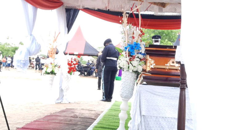 The final funeral rite of the late Constable Osei is underway at Kasoa. IGP and other dignified people have shown up at the funeral ground.