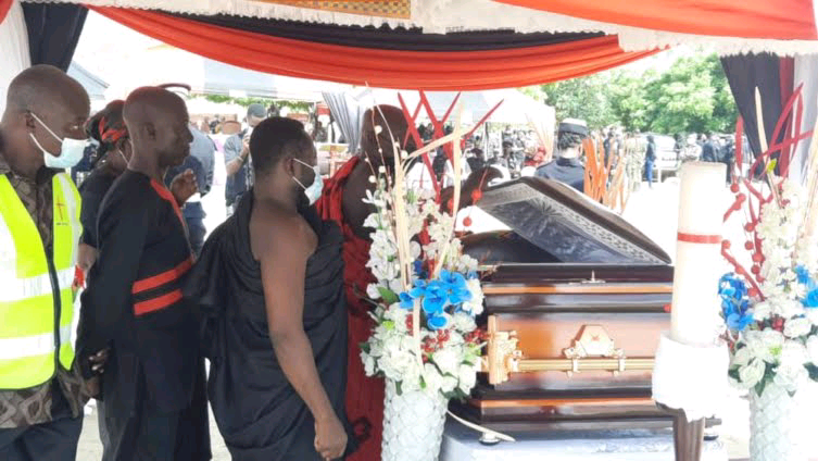 The funeral rites of the politician, popularly known as Sir John, is being held at the Sakora Wonoo Junior High School, in the Kwabre East District of the Ashanti Region where his family, friends and residents of the community, have filed past his remains to pay their last respect.