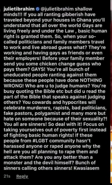 I therefore call on you and the discerning voices to condemn the activities of LGBTQ imposition on African countries, that matter , Ghana.We are highly against LGBTQ+++ Activities in our country since every aspect of our culture, religion, societal norms don’t recognize their abominable stuffs.