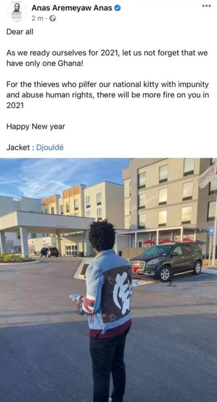 Award-winning Ghanaian investigative journalist, Anas Aremeyaw Anas has dropped a warning for corrupt officials ahead of 2021.