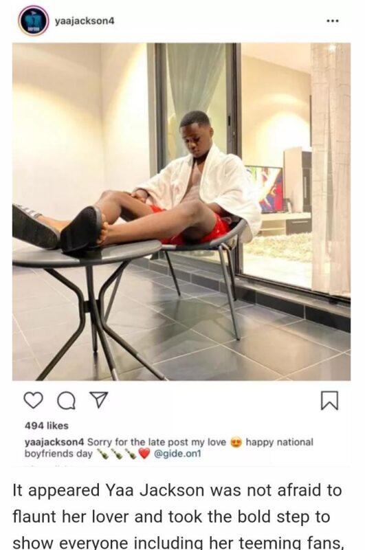 Yaa Jackson, after the posting the photo, caption it,” sorry for the late post my love. Happy international boyfriend day”.