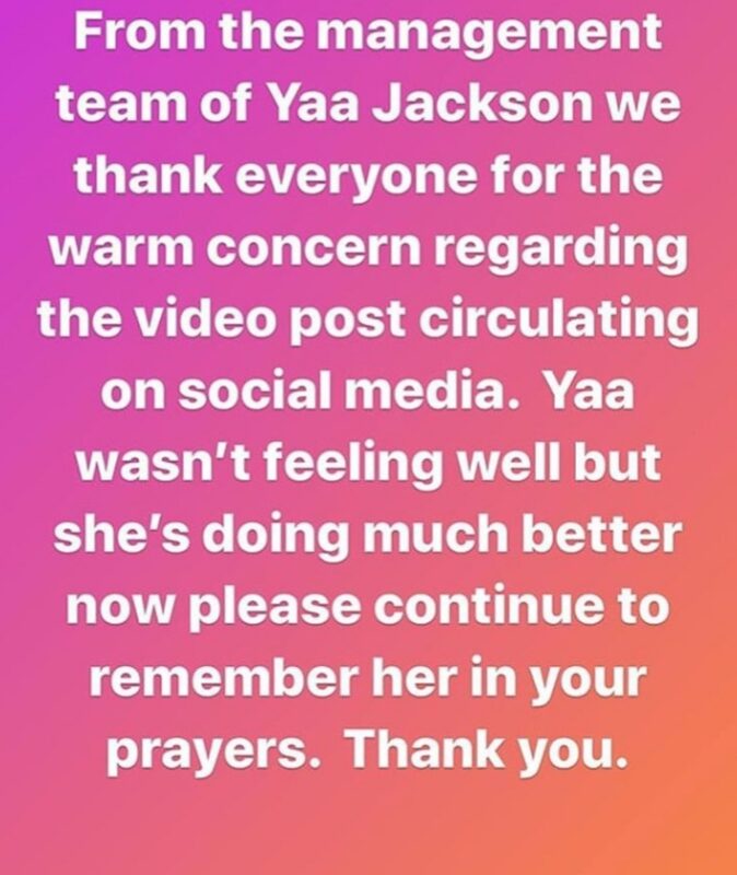 Earlier this morning, singer and actress Yaa Jackson was reported to have collapsed in her house and rushed to the hospital.